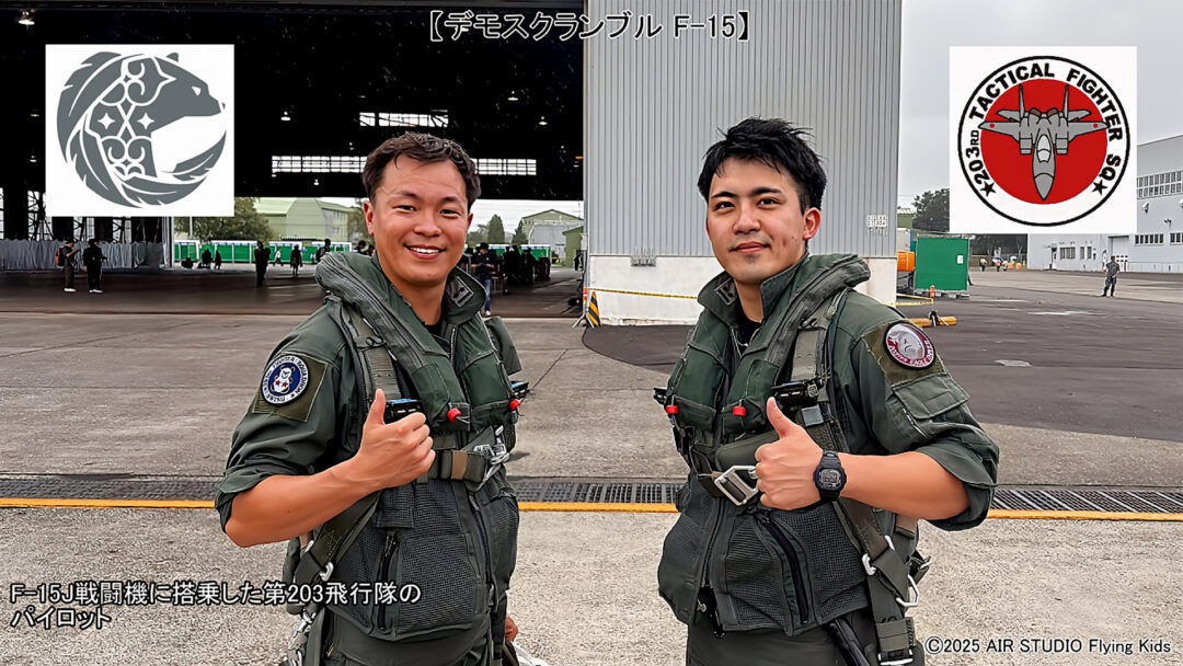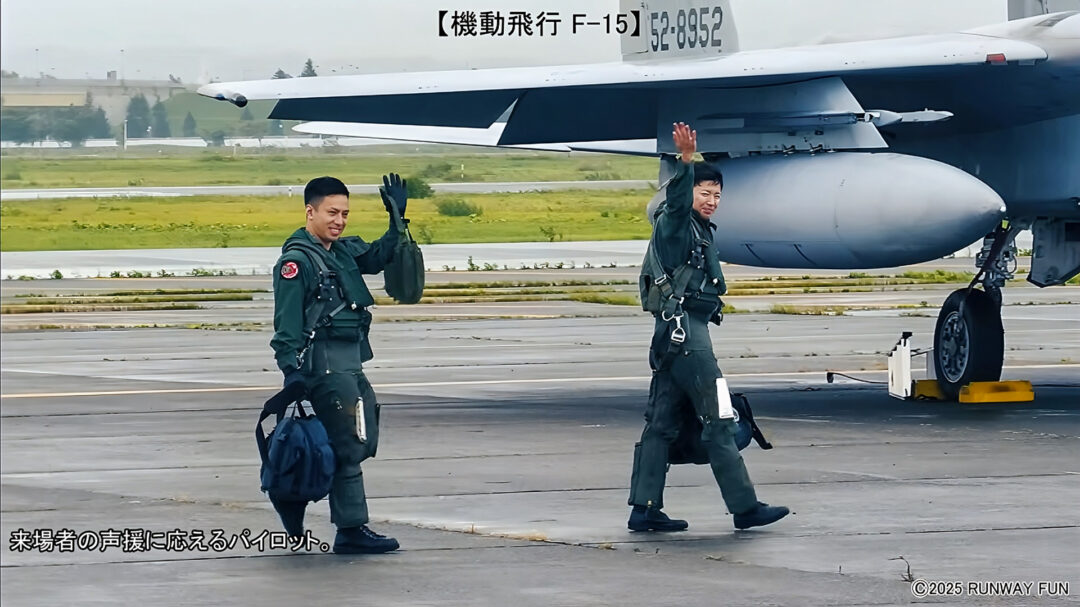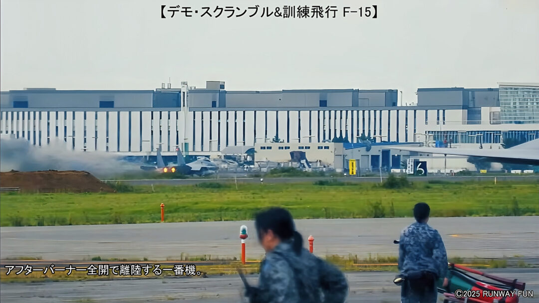 2機のF-15J戦闘機は、アフターバーナーを使用した模擬離陸を行いプログラムを終えた。