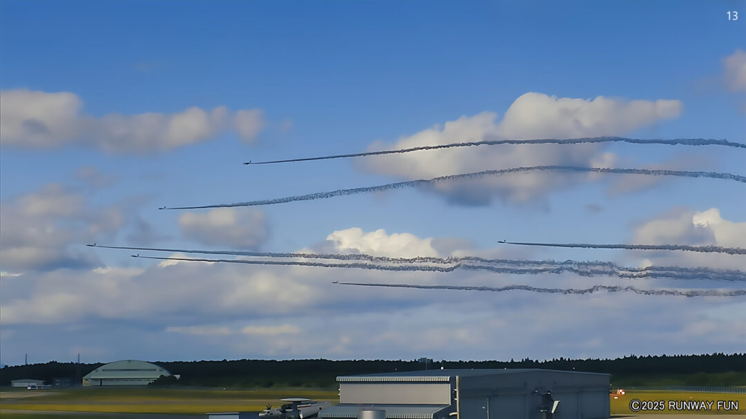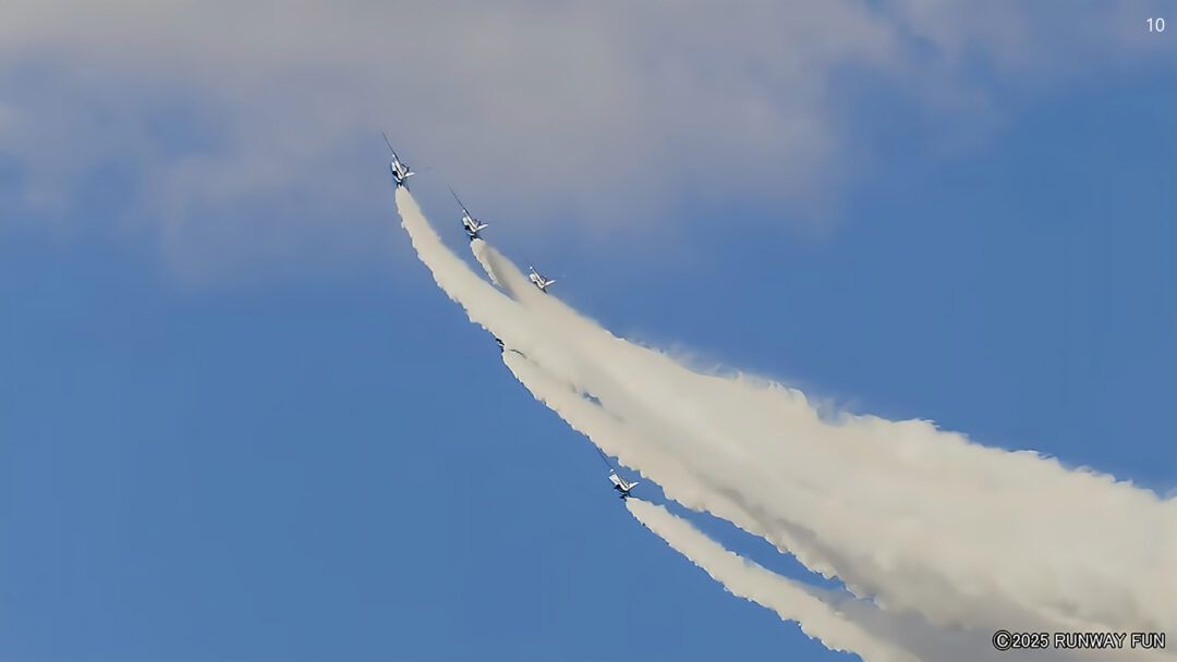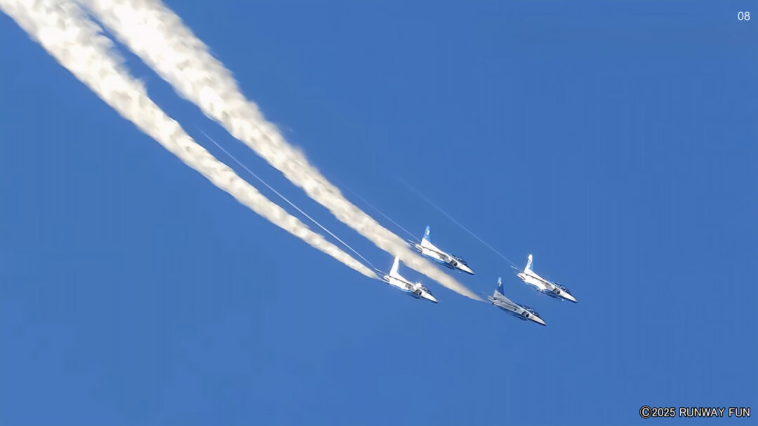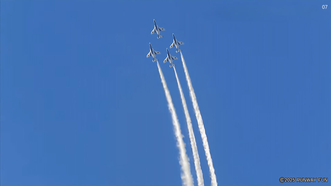 取材日記2026.01.08令和7年度 三沢基地航空祭 ~その5~ 〈ブルーインパルス〉 「第1区分」で演目が開始されたが、天候状況の悪化により途中から「第4区分」に変更された。 〈RQ-4B グローバルホーク〉 偵察航空隊の無操縦者航空機RQ-4Bグローバルホークが着陸した。