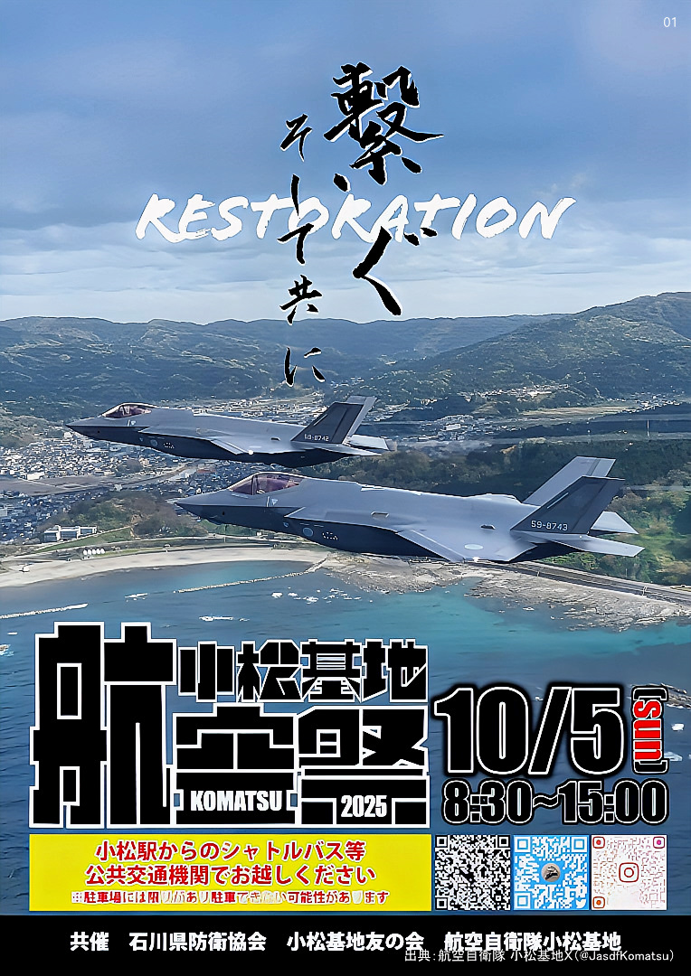 今年の航空祭は能登へのエールと復興への思いを込めて、「RESTORATION~繋ぐ。そして共に」
